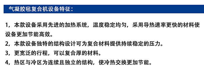 • 用途:氣凝膠氈保溫材料等各類片卷料熱復(fù)合產(chǎn)品