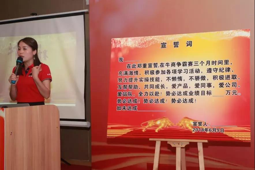 第一天的擴(kuò)展訓(xùn)練的圓滿(mǎn)結(jié)束后,次日,迎來(lái)了開(kāi)幕致詞、團(tuán)隊(duì)宣誓、宣揚(yáng)精神。“愛(ài)學(xué)習(xí),樂(lè)分享,講奉獻(xiàn),共成長(zhǎng)”是我們共同的口號(hào),也是我們共同的精神目標(biāo)。團(tuán)隊(duì)宣誓,不僅僅是對(duì)在場(chǎng)人員的承諾,也是對(duì)公司,對(duì)自身的承諾。團(tuán)隊(duì)大合照,映射出我們大家滿(mǎn)溢而出的笑容,對(duì)這次舉辦牛商爭(zhēng)霸賽得到的收獲感到滿(mǎn)意,會(huì)場(chǎng)弘揚(yáng)的團(tuán)隊(duì)精神感到振奮,未來(lái)奮斗的目標(biāo)感到激情。牛商爭(zhēng)霸賽開(kāi)啟儀式圓滿(mǎn)結(jié)束,為期3月學(xué)習(xí)旅程正式開(kāi)啟,祝愿53家公司都能夠在此次舉辦大會(huì)上得到滿(mǎn)意的答卷!
